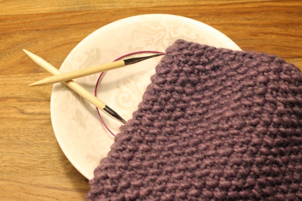 El patró, que vaig veure aquí, és molt senzill. Només cal que munteu un nombre imparell de punts en agulles circulars i que alterneu un punt del dret i un del revés al llarg de totes les voltes (és important que feu un nombre imparell de punts per a què en la volta següent esteu fent un punt del dret on a la volta anterior l'havíeu fet del revés i del revés on l'havíeu fet del dret).